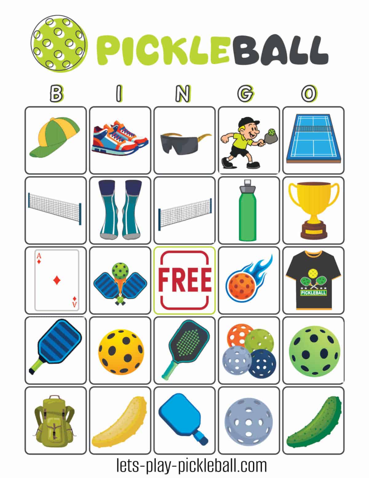 Like I said, I created 4 different versions of what you see above so the markers will get mixed up and you won’t have everyone win at once. You will first print off this bingo for pickleball sheet here and then the other 3 versions are below. If you only have 2 players then you just need half of them.