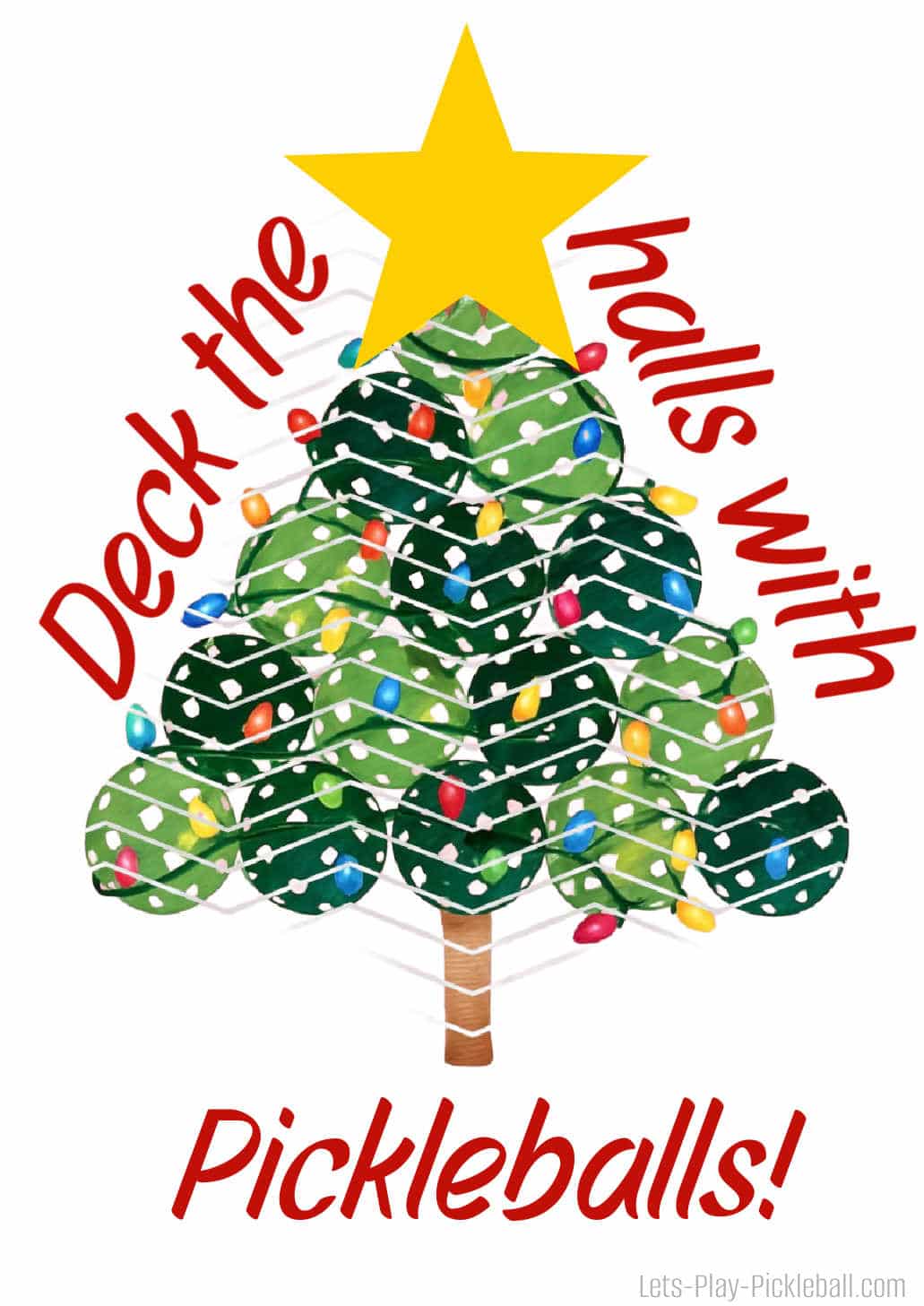 However if you want a big statement like the one above that fills an entire 8.5″x11″ page then you are going to need the link to that printable pickleball card here. Both cards feature balls that make up a tree with lights around them and a star on top with the cute saying people are going to love.